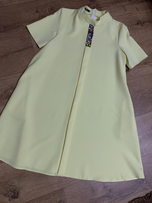 Дуже гарне плаття з кишенями Колір лимонний дуже ніжне Повністю нове Потребує легкого прання так як з вітрини
