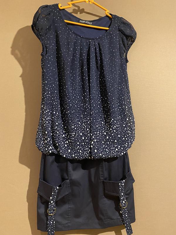 Сукня міні, колір темно-синій в дрібний горошок, них сукні облягаючий