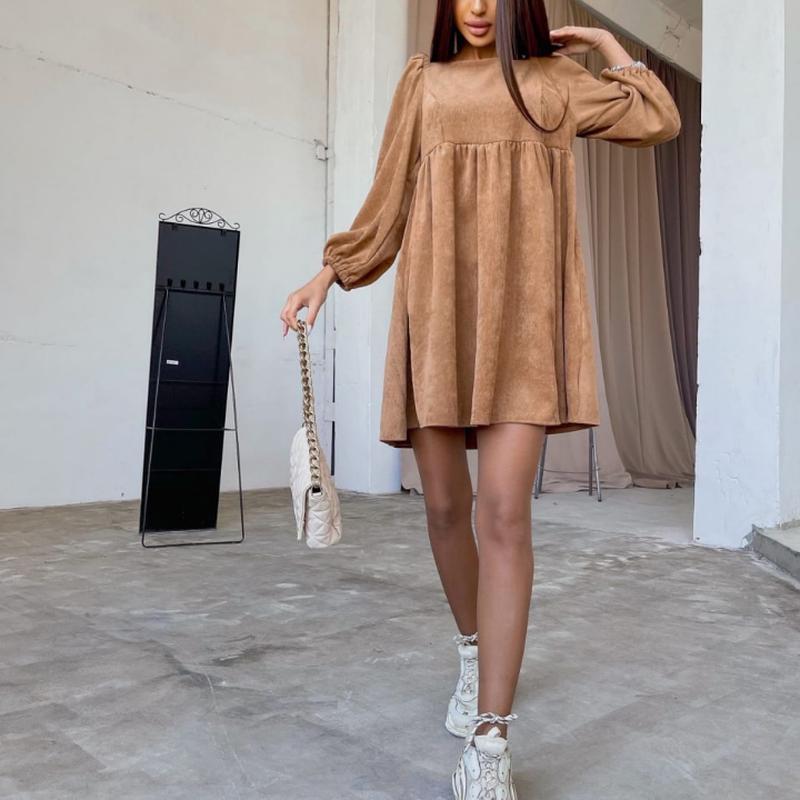 #Плаття Артикул: 681-158 Колір: ліловий, кемел Розміри: 42-44, 46-48 Матеріал: микровельвет