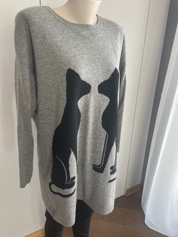 Длинный свитер-платье с котиками. Очень теплый. В идеальном состоянии, без дефектов.