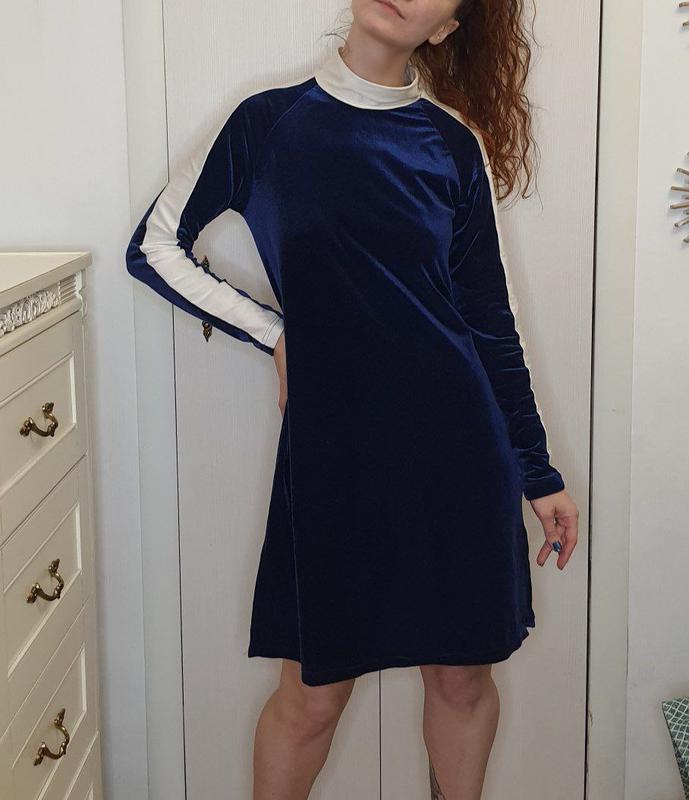 Спортивне плаття, оксамит. Розмір s, але М і L, теж нормально. См. заміри дл. 87, ПОГ 49, ПОБІДИ 53.тканина тягнеться. На фото надіто на 36 розм.