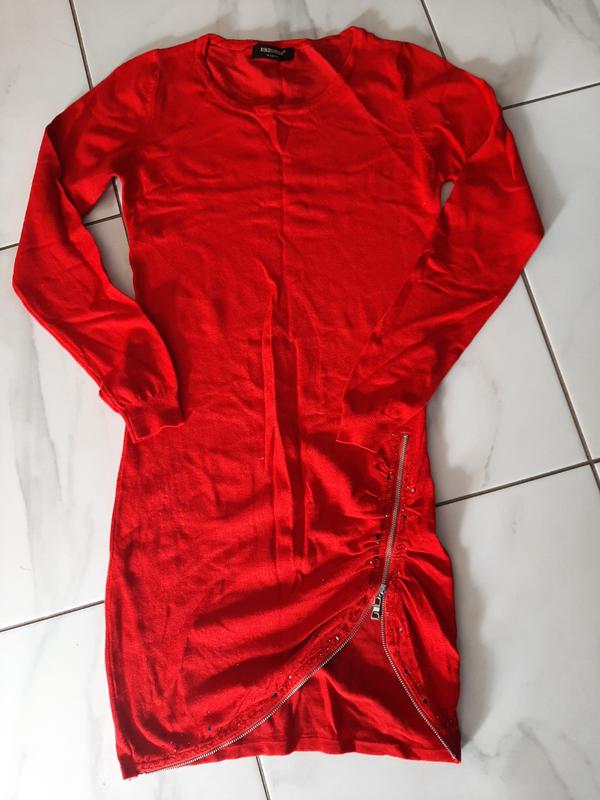 Красиве червоне плаття з декором в районі стегна.Без нюансів.