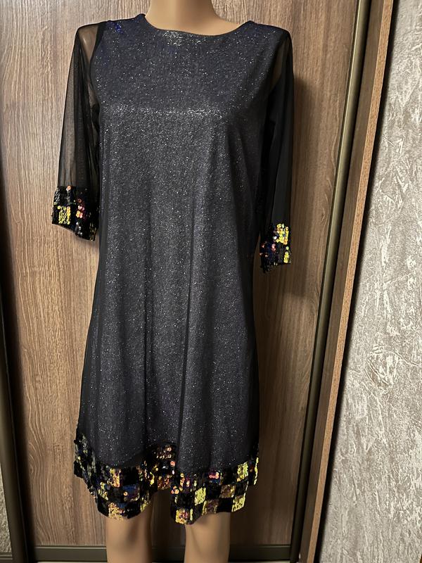 Сукня шалено красиве. Плаття сірого кольору, зверху чорна сітка, в низу паєтки і на рукавах. Одягнене два рази на захід. Стан ідеальний.