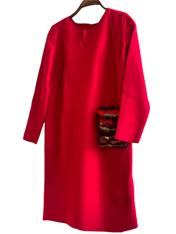 Одето один раз, состояние новой вещи. Карман мех натуральный . Прямой крой, тёплое , комфортное, яркое. Длина 87, пог 44