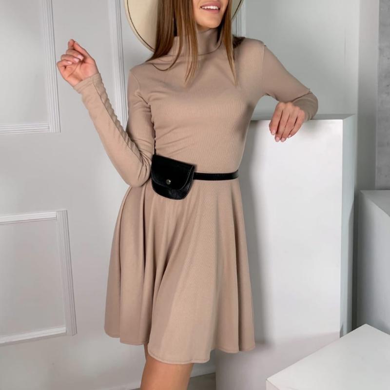 #Платье Артикул: 506-356 Цвет: чёрный , беж, пудра , хаки , серый Размеры: 42-44, 44-46 Материал: турецкий рубчик х/б Сумочка на поясе входит в комплект Фото Реал
