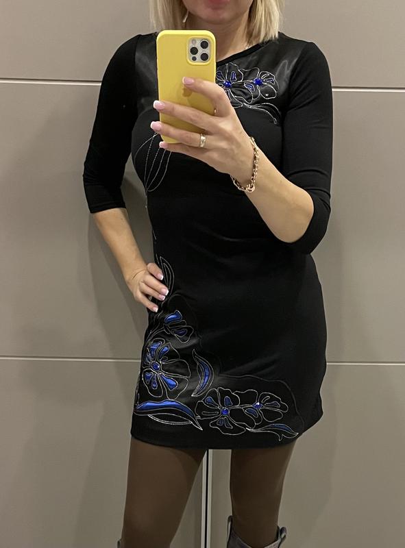 Гарно сидить на фігурі, приємна , еластична тканина! Прикрашена вишивкою і штучними каменями синього кольору. Шнурування на спині регулюється.