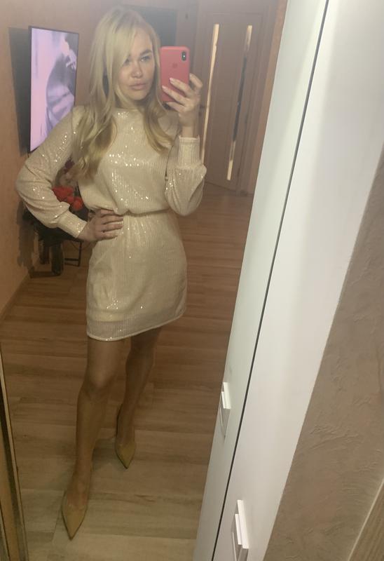 H&M Сукня паєтки. Шикарне плаття, гарний вершковий колір, сяде ідеально на будь-яку фігуру, в стильну паетку, на м'якій підкладі. Буде актуально на будь-яке свято, будь то День Народження, корпоратив, весілля, фотосесія, Довжина 88 см, рукав 62 см, груди 48 см, стегна 51 див. Купувала в Іспанії. Лімітований випуск, ексклюзив 100%. Обміну, повернення немає.