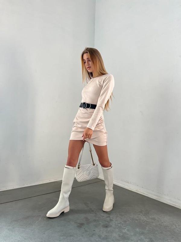Модель: 7096 Розміри: 42-44, 46-48 Тканина: замш на дайвінгу Кольори: чорний, синій, пляшка, беж, фрез, мокко Пояс в комплекті не йде