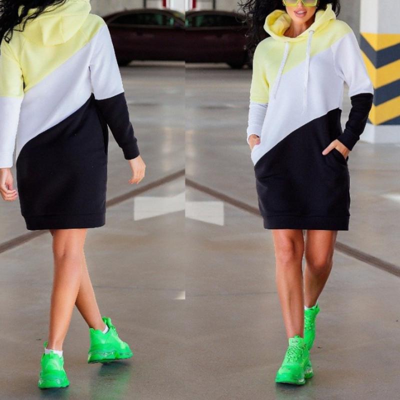 Сукня GA-1371 арт.v278 Розміри: S, M, L Колір: бузково-біло-сірий Тканина: трехнить(трикотаж на флісі) Опис: тепле 3-х кольорове плаття-худі з капюшоном. Сукня прямого вільного крою з кишенями. ----------------------------------------