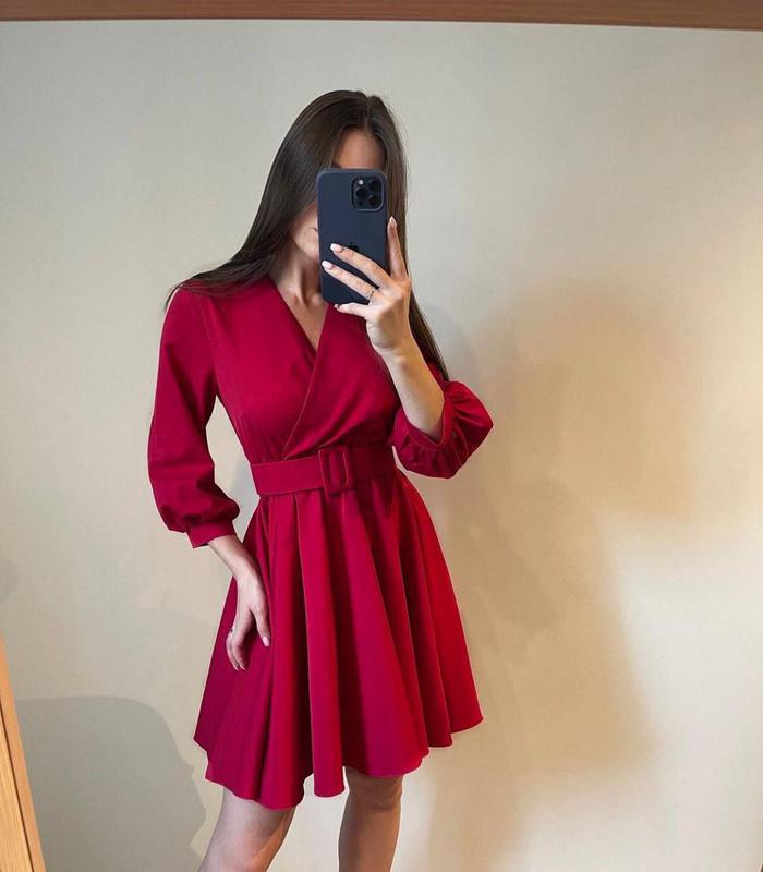 hp 02 Тканина : креп костюмка Розміри :42-44;46-48 Кольори : Бордо, чорний , олива Пряжка обтягнута тканиною в колір сукні Стильно і універсальне плаття з костюмної тканини елегантно підкреслить вашу фігуру і прикрасить вас, підійде і для щоденного виходу так і для святкових заходів