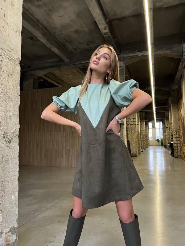 Новинка🤩 Платье Мод.131 Цвета: оливка, беж, чёрный, синий Размеры: 42-44, 46-48 Ткань: замш+ эко-кожа Цена 650 грн Фото реал📸 Платье из комбинированной эко-кожи и замши станет отличным вариантом для стильного осеннего образа 👌🏼