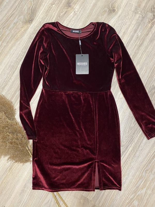 Шикарное бархатное платье Missguided бордового цвета. Длинна платья 84 см.