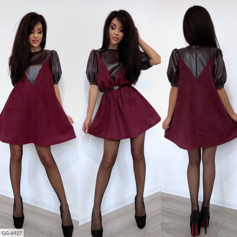 Платье в комплекте с ремешком Ткань замш + экокожа Длина 80 см, объём груди до 100 см Цвет чёрный, марсала, хаки, светло-коричневый