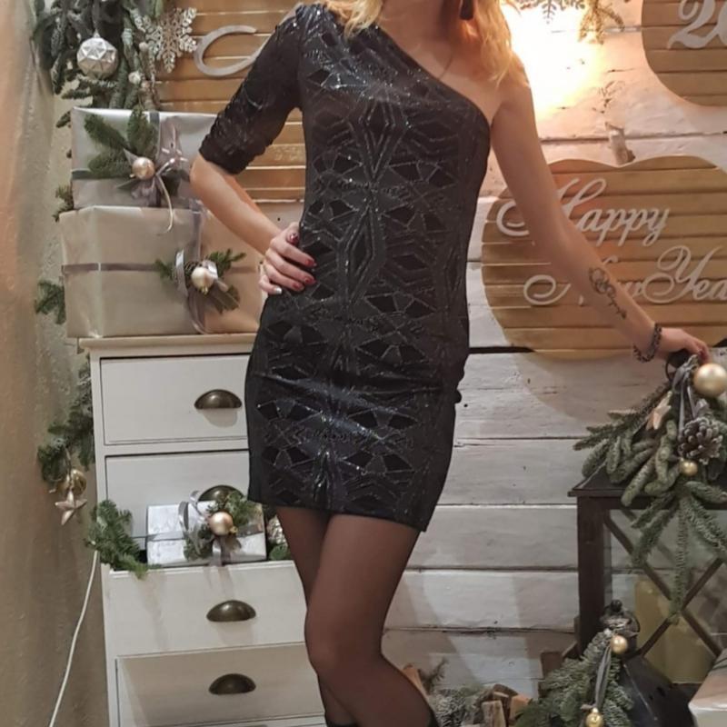 Красивое платье с одной стороны длинный рукав.Состояние нового,одевала 1 раз.Размер С небольшая М