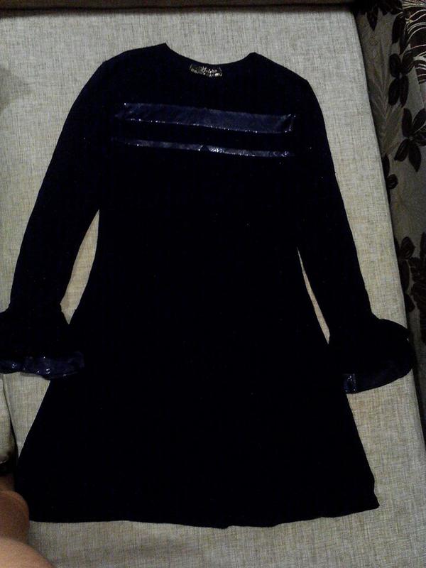 Темно синє плаття з люрексом.ОГ 88 . довжина 85 см рукав58см.