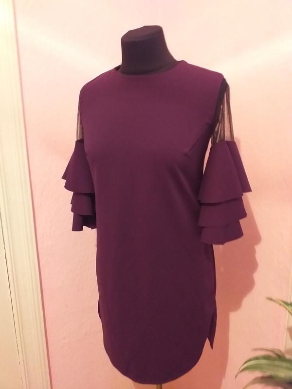 Плаття нарядне, розмір-наш 44, тканина креповый трикотаж, колір фіолетовий, рукав сітка. Не підійшов розмір.