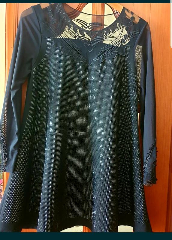 Красиве сиильное плаття, розмір М-L, чорного кольору, довжина спереду 68 см, довжина ззаду 76,5 див., довжина рукава 56 див., без дефектів, в ідеальному стані