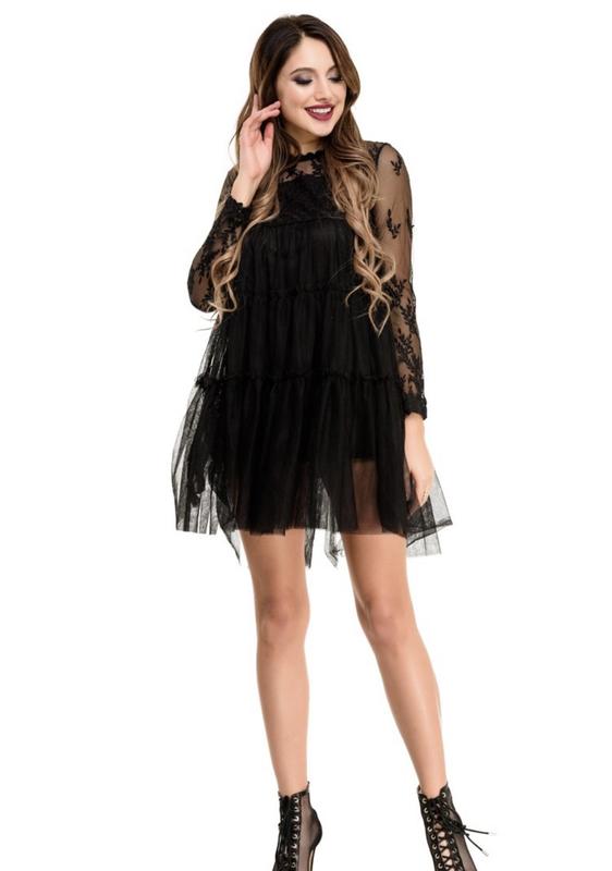 Шикарна фатинова сукня з підкладкою. Розмір - S (орієнтуйтеся на заміри): Довжина - 82 см Напівобʼєм грудей - 42 см Є незначні дефекти (показано на фото), маленька дірочка на рукаві внизу сукні.