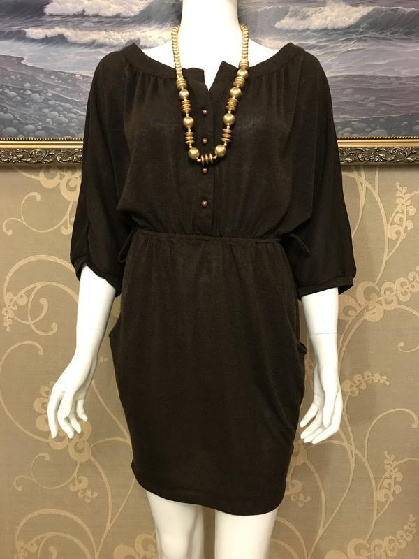 Предлагаю вашему вниманию очень очень красивое и стильное брендовое платье тёмно-коричневого цвета, по бокам есть кармашки (к сожалению фото не передало всю красоту этого платья..в живую смотрится гораздо интересней и цвет более насыщенный). Фирма PURPLE. Размер указан 8. Состав: 95% полиестер и 5% спандекс...ткань мягенькая и приятная к телу, хорошо тянется. Новое. ПОГ-крой свободный, длина платья-82, длина рукава от ворота-46, полуобъём талии-резинка-30+ещё тянется, полуобъём в бёдрах-47+ещё тянется. ВНИМАНИЕ!!! При покупке три и более моих вещей-бесплатная доставка посылки Новой почтой. Удачных покупок.