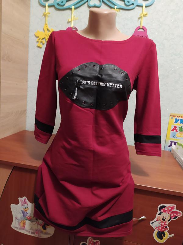 Сукня в ідеальному стані Декорація ГУБИ шкіряні, змеечка на губах растегивается, але від тіла є ще тканина) Розмір 44,тягнеться )