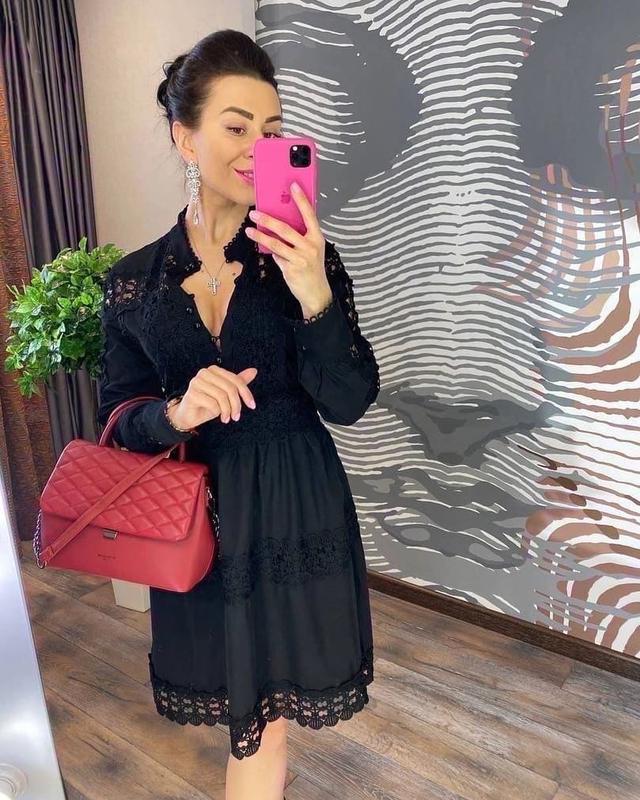 🧡ТОВАР КЛАССА ЛЮКС 🌸🌸🌸 настоящий шедевр высокой моды, невероятно красивое платье с безупречной посадкой прекрасно сидящее на фигуре приталенный силуэт демонстрирует тонкую талию , грацию и красоту вашей фигуры платье изготовлено из коттона высокого качества элегантного чёрного цвета,декорированное ошеломительно красивым кружевом , спереди платье застегивается на маленькие пуговички, которые эффектно и утонченно открывают зону декольте РАЗМЕРЫ М-42/44 Л-44/46 КОД 0361 🍃 ЦЕНА 8⃣5⃣0⃣ ГРН