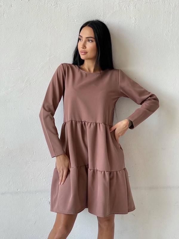 Розміри:42-44.46-48.50-52. Довжина:сукні 90 см,рукава 60 см Тканина:креп костюмка. Кольори:бордо,чорний,мокко. Р 1 Ог 94 Від 90 Про 120 Довжина сукні 90 см, рукава 60 см. Р 2 Ог 100 Від 96 Про 120 Довжина сукні 95 см рукава 60 см. Р 3 Ог 110 Від 102 Довжина сукні 97 см Рукава 60 см
