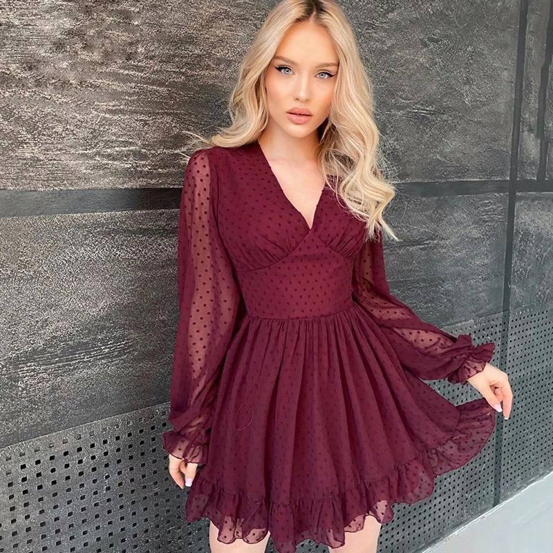 📸Воздушное платье💭 Мод 270 ⠀ ▪️ткань: шифон на подкладке, на поясе резинка ▪️размер: универсальный 42-46 ▪️цвет: бордо, черный ▪️длина: 82 см, рукав 58 см, Пог 45 см, пот до 39 см ⠀
