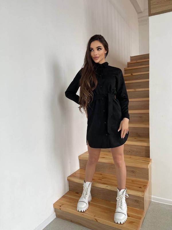 🟣🟣🟣Нова коллекція 🟣🟣🟣 Жіноча сукня-сорочка з поясом Рукав 60 см Замша Довжина 95 см 42- ог 86/90 44- ог 90/94 46- ог 94/98 48 -Ог 98/102 Розміри 42,44,46,48