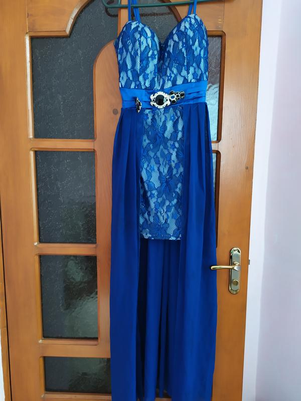 Нарядное платье с нюансами, все показала на фото. Нуждается в стирке, есть пятна, может отстирается и спереди надо пришить брошь. Отдаю почти даром, может его кто-то приведет в хорошее состояние