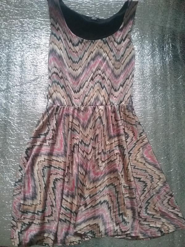 Молодіжне плаття Krisp. Яскраве і переливающее, казковий принт. На талії резинка, можна носити під поясок. Розмір на бірці 12, але реально маломерит на S/M. Довжина сукні 81 див.