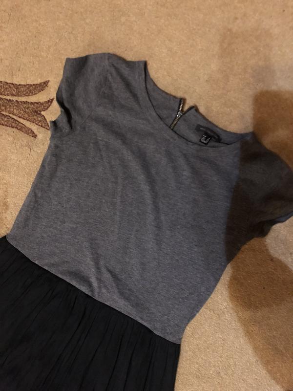 Цвет черно-серое, платье сзади на замке. Замеры: длина 87 см ширина плеч 36 см полуобхват груди 44 см полуобхват талии 38 см полуобхват бедёр 56 см длина рукава по внешней стороне 14 см, по внутренней 3 см