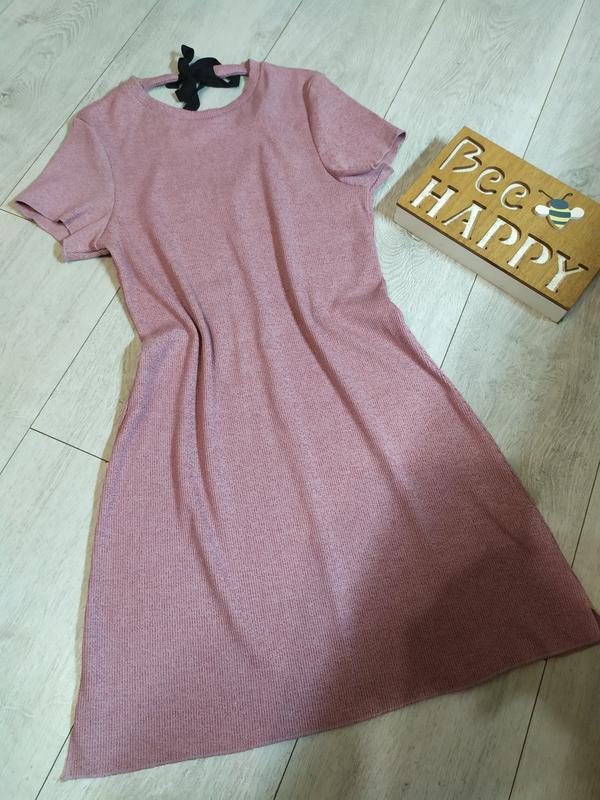Класнюче плаття в рубчик з коротким рукавом. Взаді сукня на зав'язках з глибшим вирізом на спині. Є невеликі дві розпорочки по боках. Розмір вказаний 10 європейський. Бренд River Island. (14)