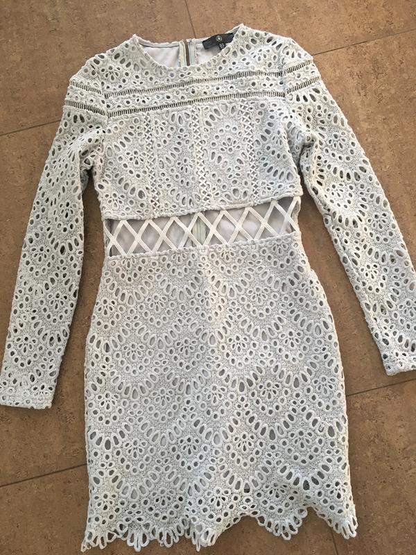 Стильное, нарядное, серое кружевное платье , р 36 -38 ( м)