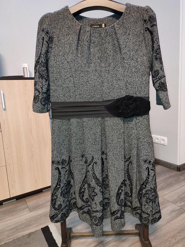 Продам своє улюблене,щасливе плаття!Виробництво-Туреччина.Довжина-93 см,ПОГ-46 см,ПОТ-42 див. Рукавчик3/4.На рукавах та по низу виробу-набивний малюнок.На поясі-поясок з велюровим квіткою(знімних).Збоку потайна змійка.На останньому фото-сукня на мені.Черевички до нього теж продаю.