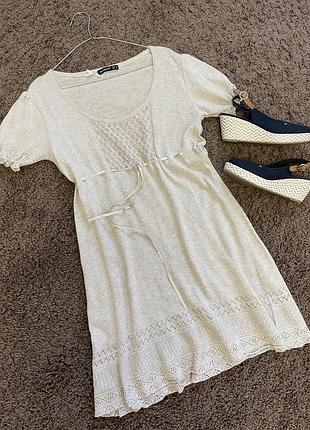 Ніжна цікава брендова сукня в ідеальному стані, актуального пісочного кольору.Атласна стрічка - зав'язка під грудей. Мягеньке приємне до тіла.Розмір L. .Звертайтесь.
