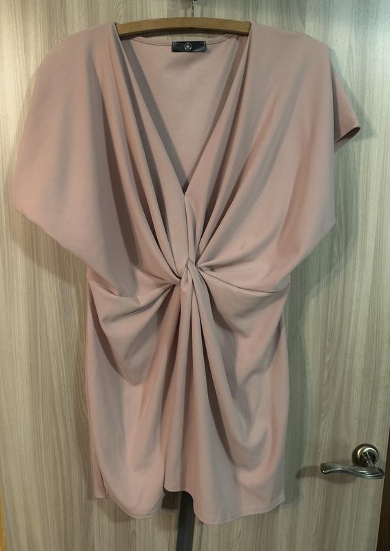 интересное платье в красивом пудровом цвете Состояние идеальное За счёт узла делает «худее» и скрывает животик если есть визуально На наш можно С-М-Л хорошо