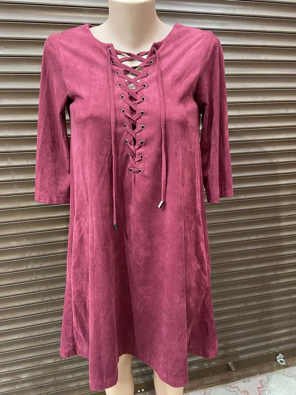 Жіноче плаття , тканина велюр, легенька трапеція, є кишені. Колір марсал . Розмір С-М