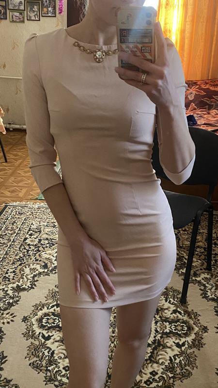 Гарний пудровий колір,дорога тканина.Довжина 80,талія 34,груди 42,стегна 42.тканина тягнеться +2 см. з недоліків потрібно з одного боку зафіксувати прикраса.