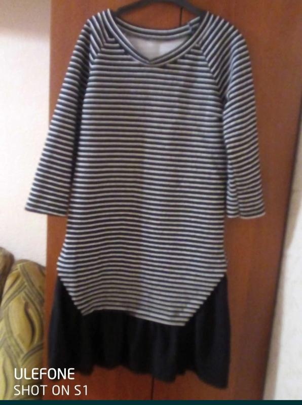 продам трикотажне плаття. Розмір 50-52. Довжина сукні 90 см. ширина грудей 45/47 Ширина по талії 43 див Рукав - реглан, довжина рукава 50 см від шиї Внизу - чорна шифонова оздоблення. тканина тягнеться в ширину при відправці укрпоштою+4 грн