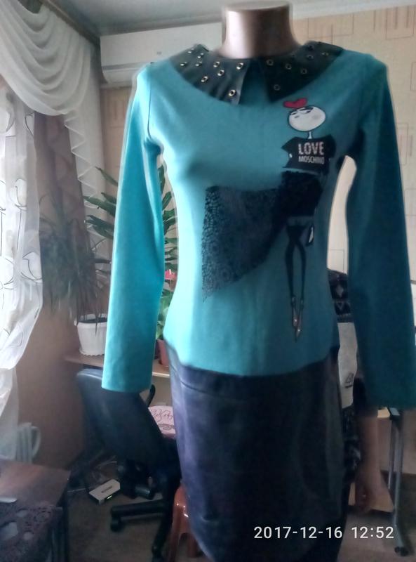 верх платья дайвтнг,сзади трикотаж,низ кож зам,пошито Укранской модельером,длина 84,рукав 58,там где начинается юбкс44см,платье на фигуру с бедрами,или кто любит свободного фасона,подаю потому,что похудела
