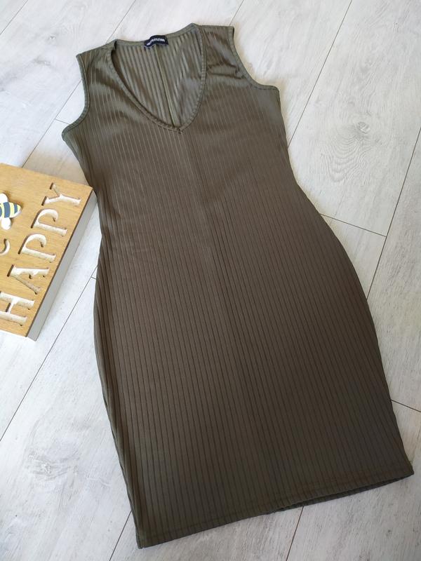 Класичне, приталене плаття в рубчик. Сукня під спортивний стиль, ідеально підійде до кросівок, або до будь-якого іншого взуття. Колір хакі, болотний (фото не передає). Гарно тягнеться, не мнеться. Бренд Prettylittlething. Розмір вказаний 10. Склад: 95%-поліестр, 5%-еластан. (11)