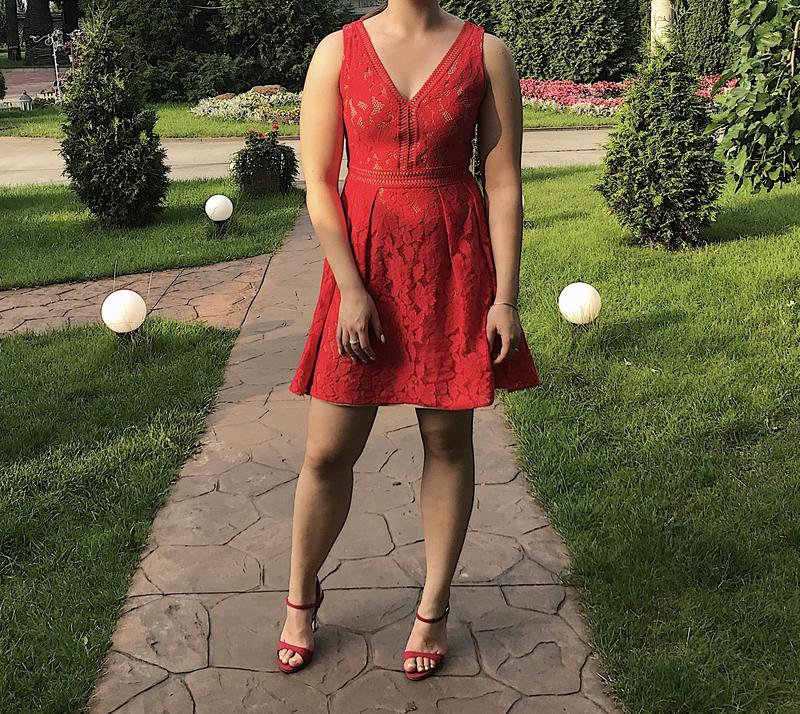 Красное кружевное платье А-силуэта. Размер S/M Было надето 2 раза