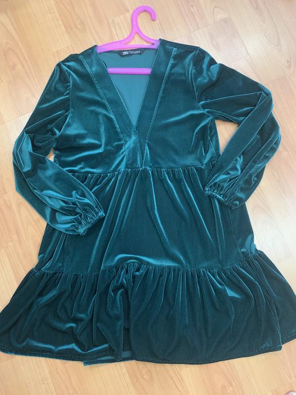 Стильне велюрову сукню , зеленого кольору , розмір S , стан нового