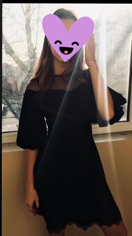 Дуже зручне,красиве плаття з утяжкой на талії.Дуже гарно виблискує на сонці,вгору сукні з дуже красивою сіточкою в горошок,а низ красиво і акуратно прикрашений мереживом.Розмір М