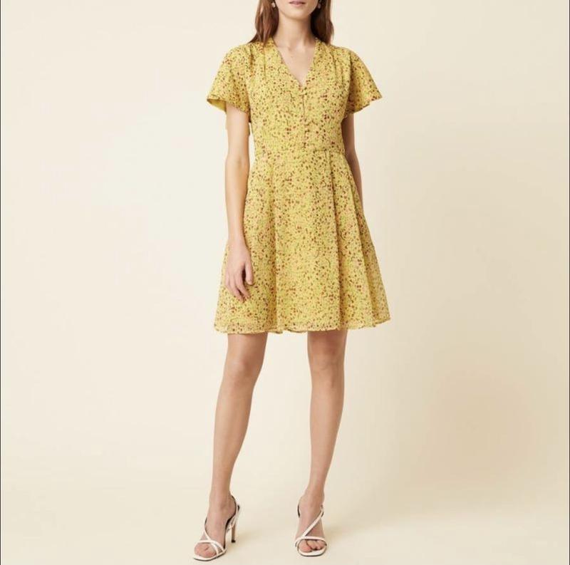 Новое (сток). По всей длине подкладка. Сверху мягкий воздушный шифон. Смотрится отлично. Свободный фасон. На спинке потайная молния. Есть фото с бирками, размер указан разный, думаю садится на полный М и на L. Не тянется. Замеры: от подмышки к подмышке - 48 см, пот - 44 см, поб - любой, длина - 98 см Состав: 100% полиэсетр