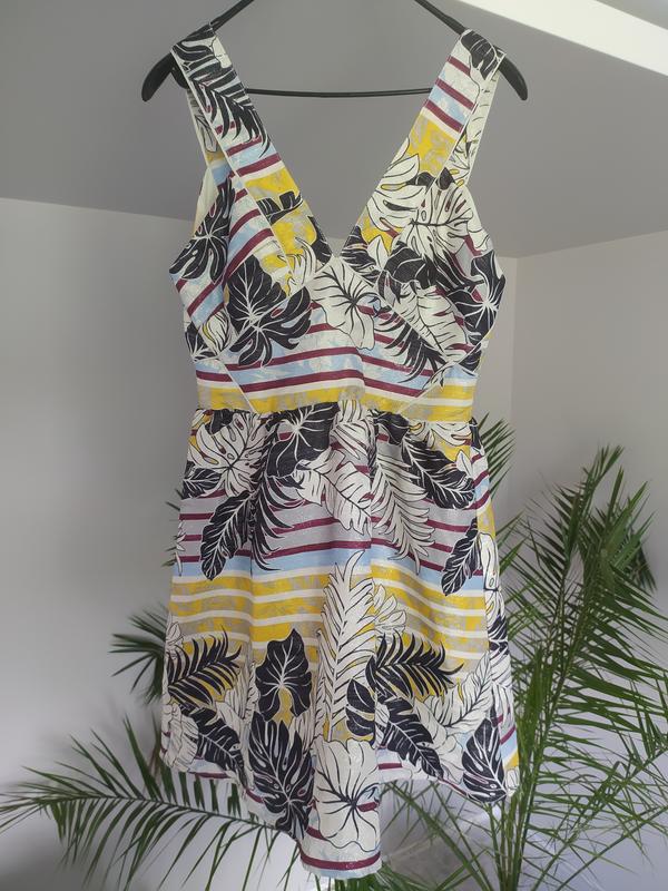 Нове легке літнє плаття з люрексовою ниткою на широких бретелях з відкритою спиною. Взаді на замок. ПОТ - 40 див. ПОГ -48см. Довжина-88см.