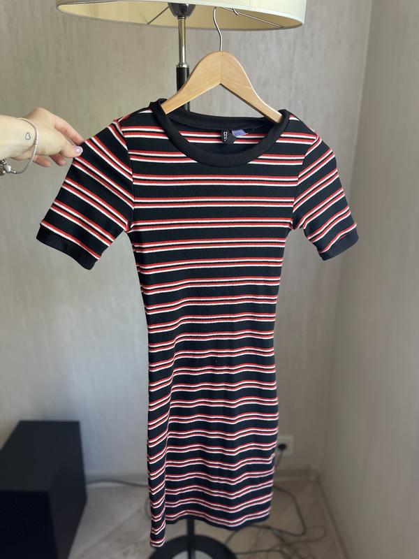 Плаття в смужку . В обтяжку з коротким рукавом .