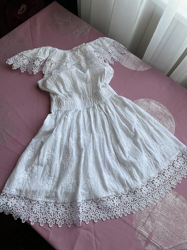 Очень приятное к телу, качественное, не парит. Верх может спустить на плечи или оставить так. Длина 78 см, талия на резинке 30 см, бёдра свободны, пог 36 Не Зара