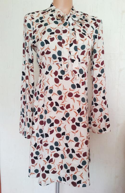 Гарненька сукня з бантиком, збоку є застібка. Довжина 86см, пог 42см, пот 37см, рукав 58см. На підкладці.