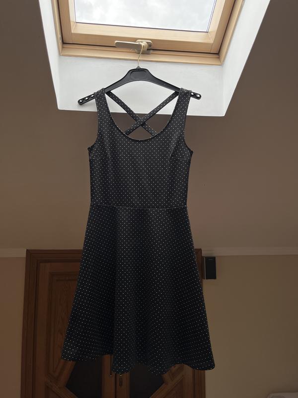Плаття чорне в білий горошок з красивою спинкою навхрест Фірма H&M Розмір хс-с
